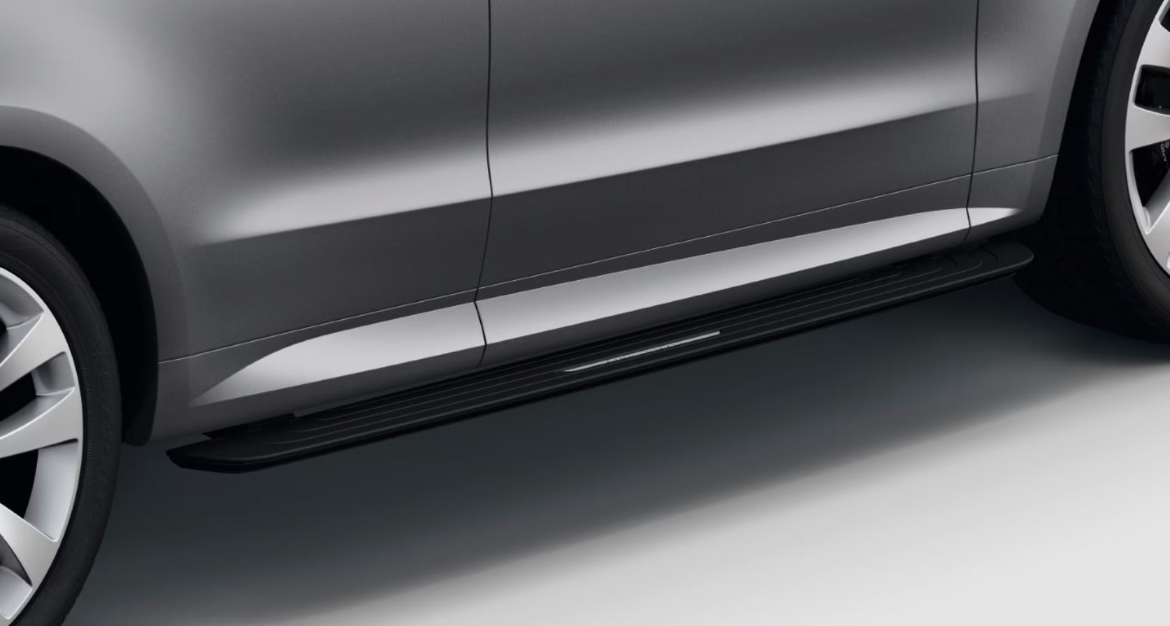 Ці розумні, практичні висувні бічні підніжки допомагають під час посадки та висадки з автомобіля, а також забезпечують доступ до даху. Кожна бічна підніжка має покриття з матової нержавіючої сталі, логотип Range Rover, витиснений лазером на чорному гумовому килимку порогу, та чорну обробку з оздобленням. Акуратно розміщені під порогами, бічні підніжки автоматично розгортаються, щойно двері відчиняються або активуються брелоком. Вони автоматично складаються, коли двері зачиняються. Розсувні бічні підніжки чутливі до перешкод і не розгортаються в умовах бездоріжжя або на низькому рівні. Автоматичний режим можна перезапустити, щоб забезпечити доступ до даху, коли двері зачинені. Комплект включає дві чорні висувні бічні підніжки, лівий кронштейн кріплення, правий кронштейн кріплення, точки кріплення домкратом, модуль RBM, кронштейн модуля, гайки M6, гвинти M6 x 16 мм, кріплення колісних арок та кріплення ліхтаря. Встановлення бічних підніжок може вплинути на позашляхові можливості автомобіля.