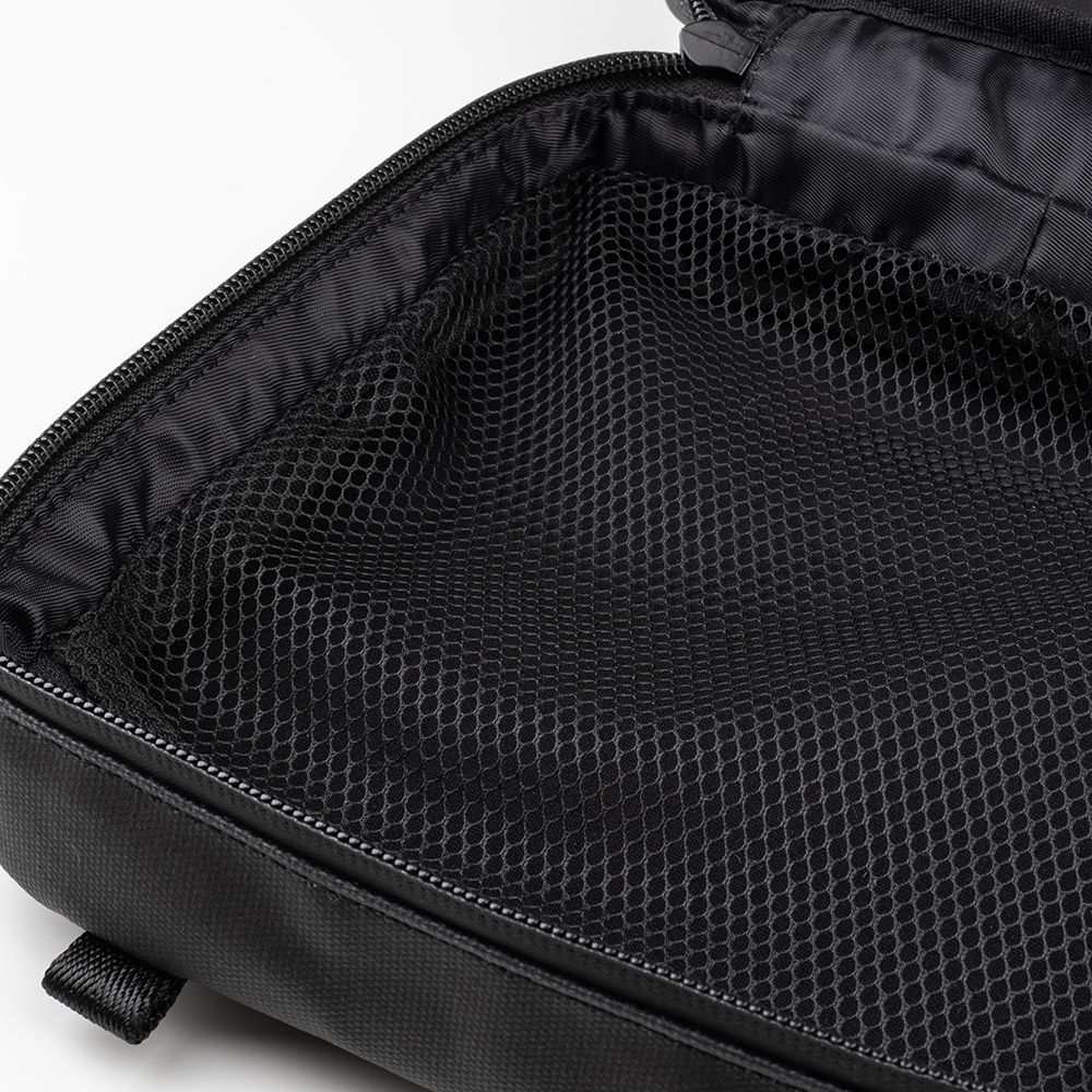 М'яка внутрішня частина з надійними кишенями та еластичними петлями. Стриманий світловідбиваючий брендинг спереду. Створено для захисту вашої техніки від негоди. Зовнішня сторона з водостійкого полотна з ПВХ покриттям і водовідштовхувальними блискавками.