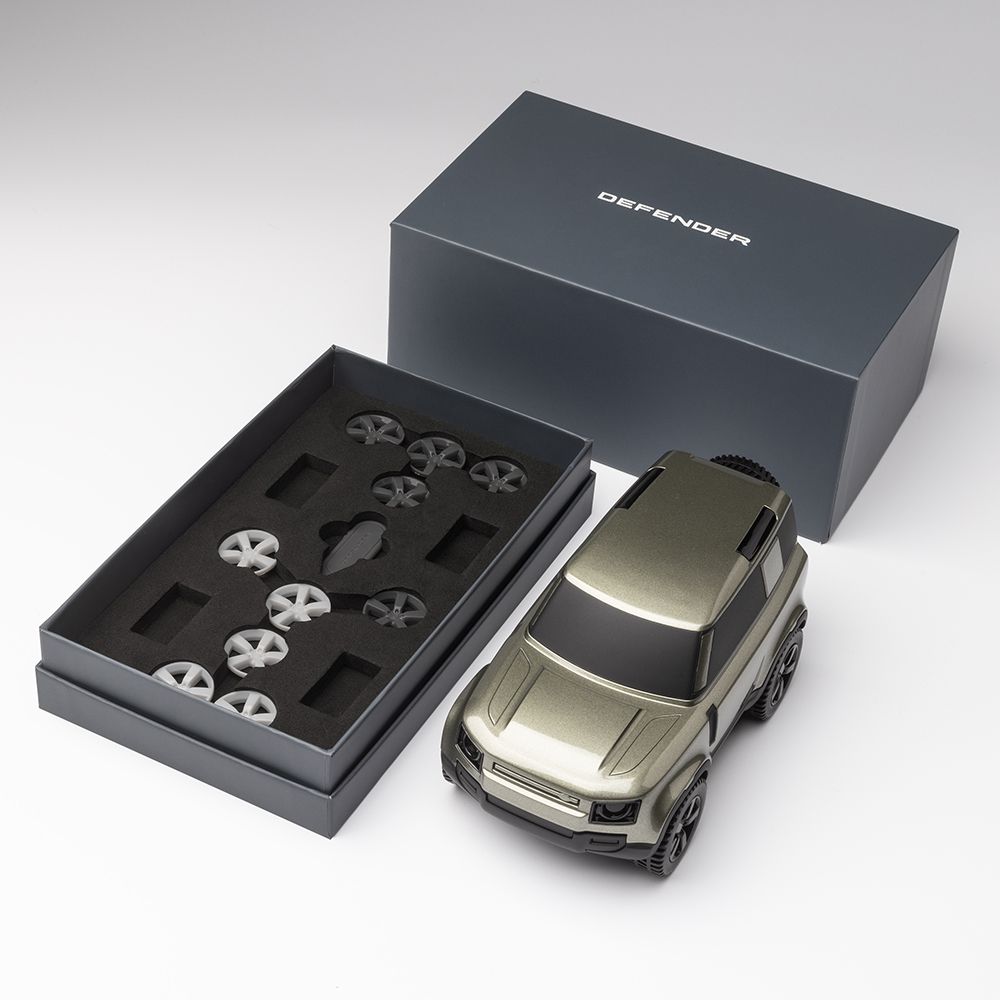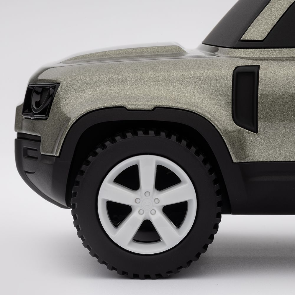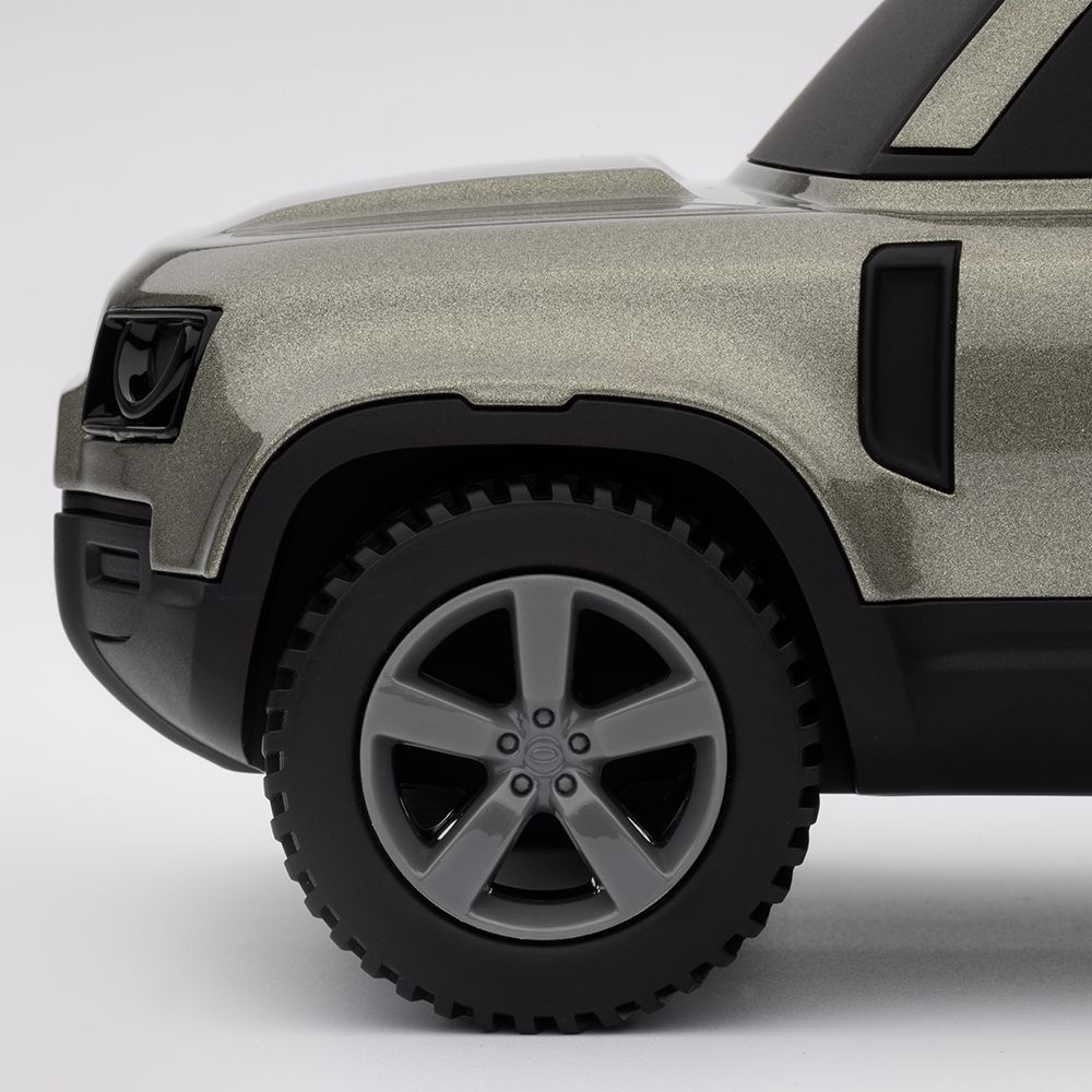 Представляємо другу версію моделі Icon у кольорі Pangea Green. Вона демонструє бездоганну форму та позачасовий дизайн Defender. Ця модель вирізняється культовими деталями фар та стійок кузова, а також постачається з трьома змінними кольорами коліс для додаткової персоналізації.