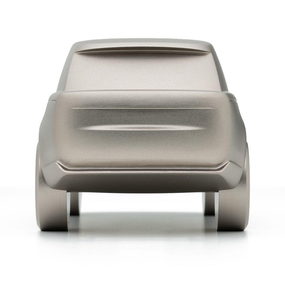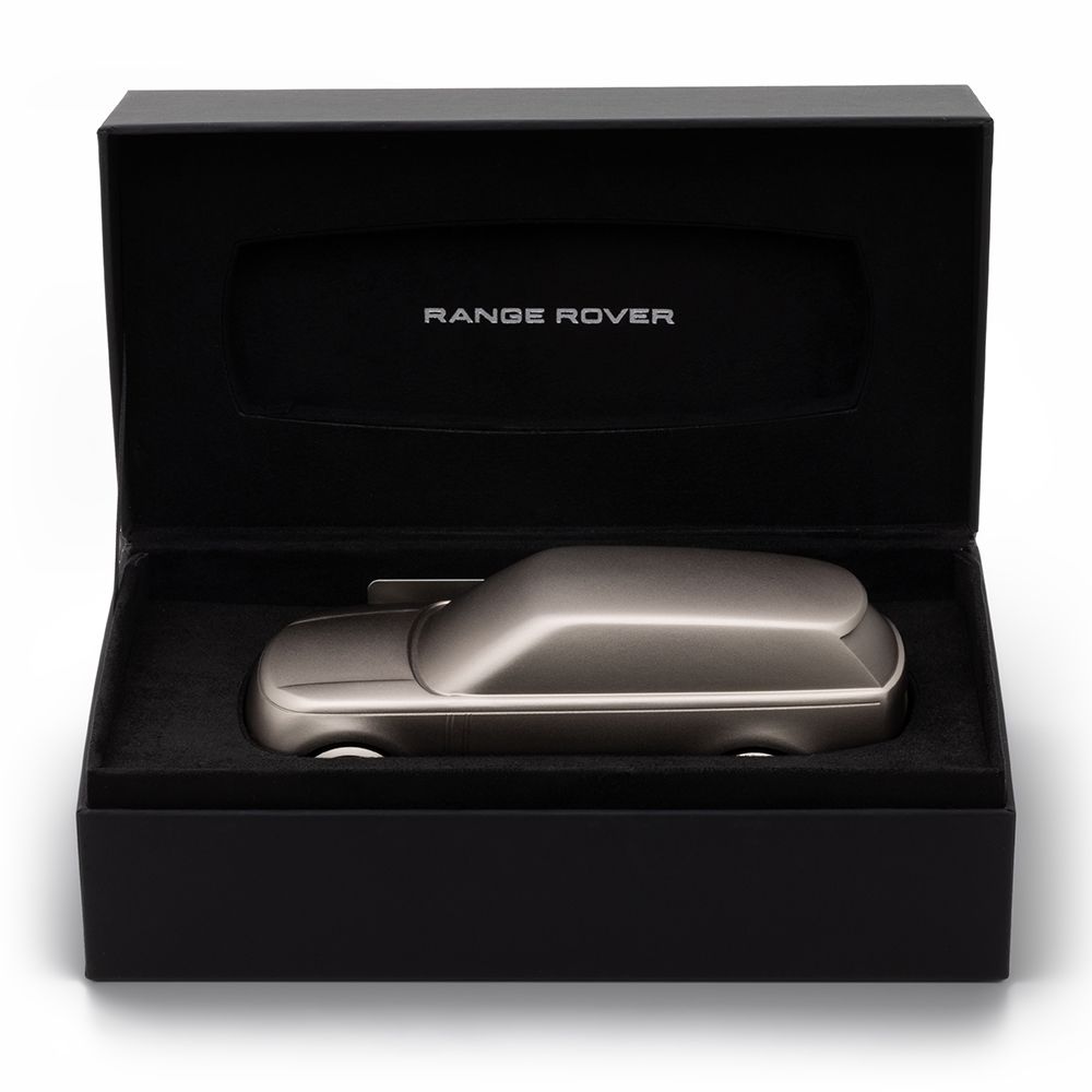 Ця 15-сантиметрова цільна скульптура виготовлена з обробленого алюмінію, що є взірцем точності та якості, унікальним чином втілює захоплюючу сучасність та привабливий дизайн Range Rover у мініатюрі. Анодована поверхня кольору Batumi Gold постачається у подарунковій коробці із сертифікатом автентичності.