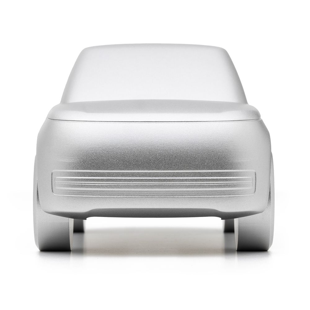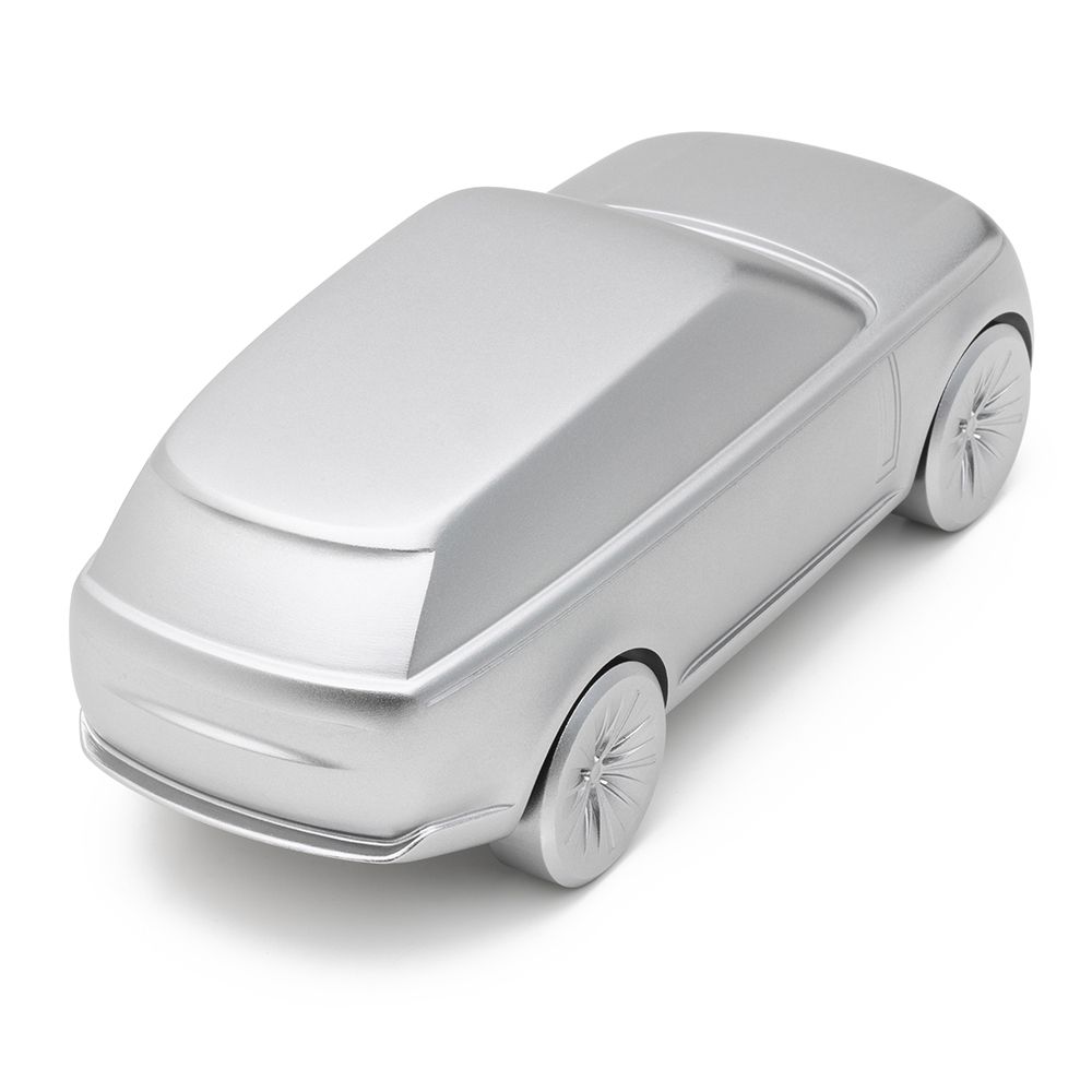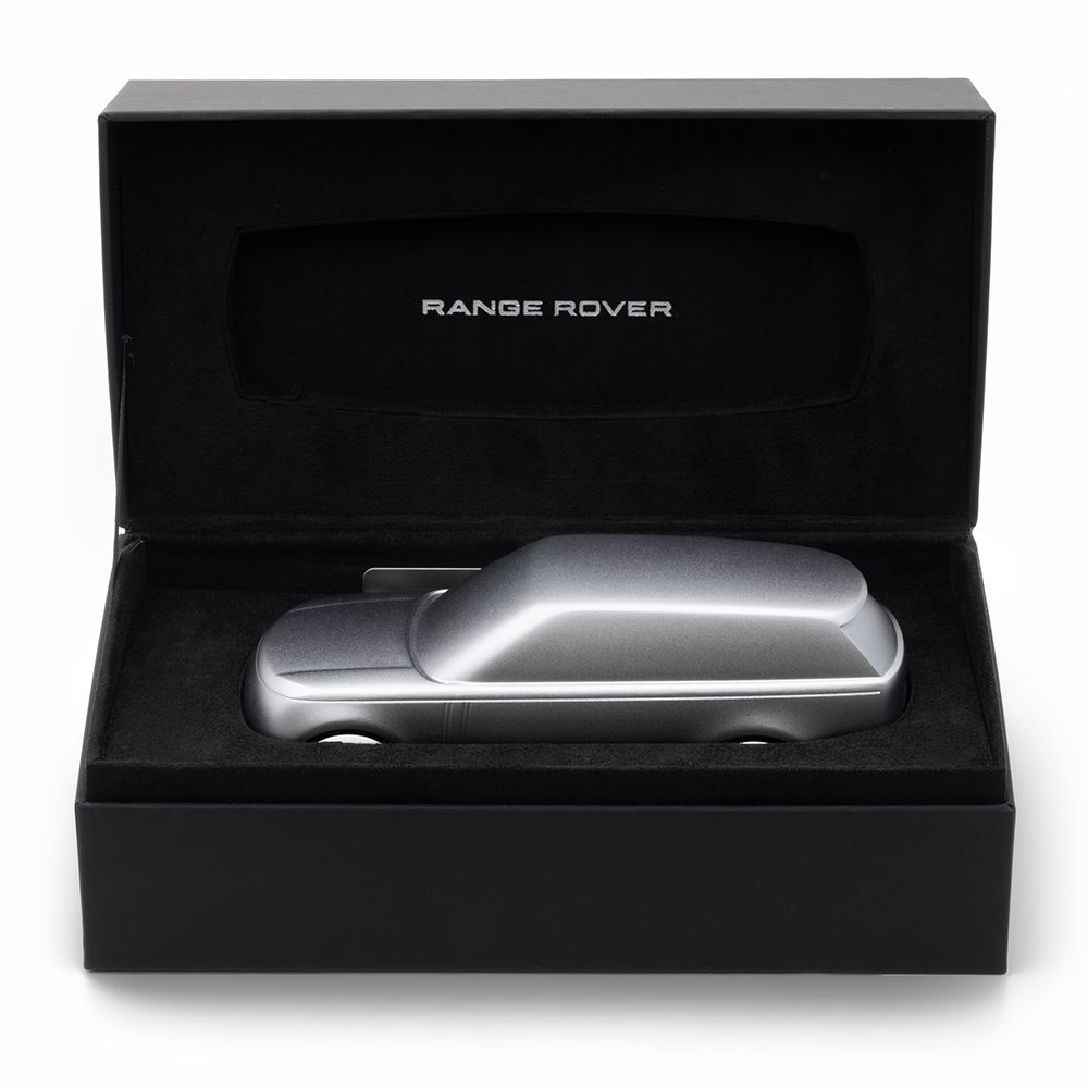 Ця 15-сантиметрова цільна скульптура виготовлена з обробленого алюмінію, що є взірцем точності та якості, унікальним чином втілює захоплюючу сучасність та привабливий дизайн Range Rover у мініатюрі. Анодована поверхня кольору Hakuba Silver постачається у подарунковій коробці із сертифікатом автентичності.